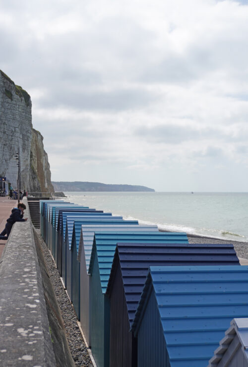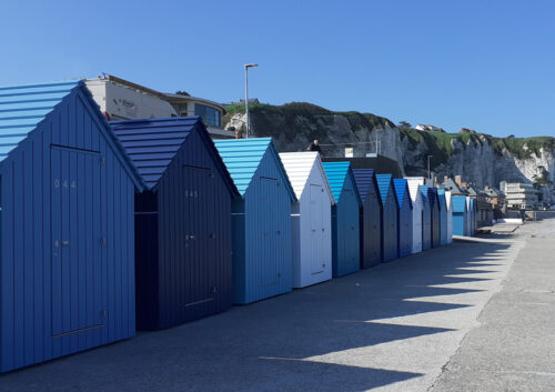Appuyant cette sobriété, la mise en couleur est nette : les cabines sont monochromes. D’ailleurs côté stéréotypes, on nous l’a annoncée aussi, la couleur : « par pitié pas de bandes bleues et blanches comme on en voit partout » dixit l’Architecte des Bâtiments de France ; « j’espère que vous n’allez nous mettre des couleurs acidulées comme on voit partout… Ici on est à DIEPPE ! », nous a interpellée une locataire… Et c’est tant mieux, car éviter tout cela, c’était notre intention aussi.